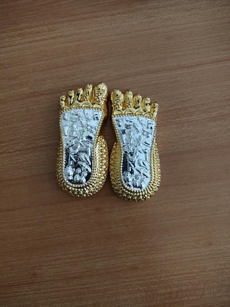 Invite divine blessings into your life with this Bhagyam Laxmi Charan Paduka, crafted in a radiant blend of gold and silver plating. Inspired by the sacred feet of Maa Lakshmi, the goddess of wealth and prosperity, this 4.5-inch idol is perfect for your home mandir, cash counter, or spiritual corner.